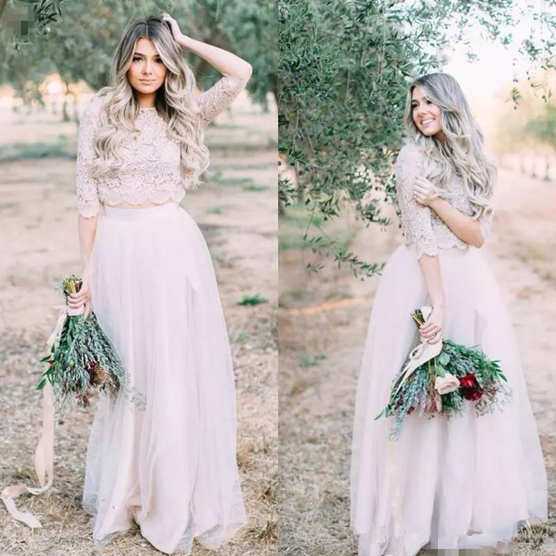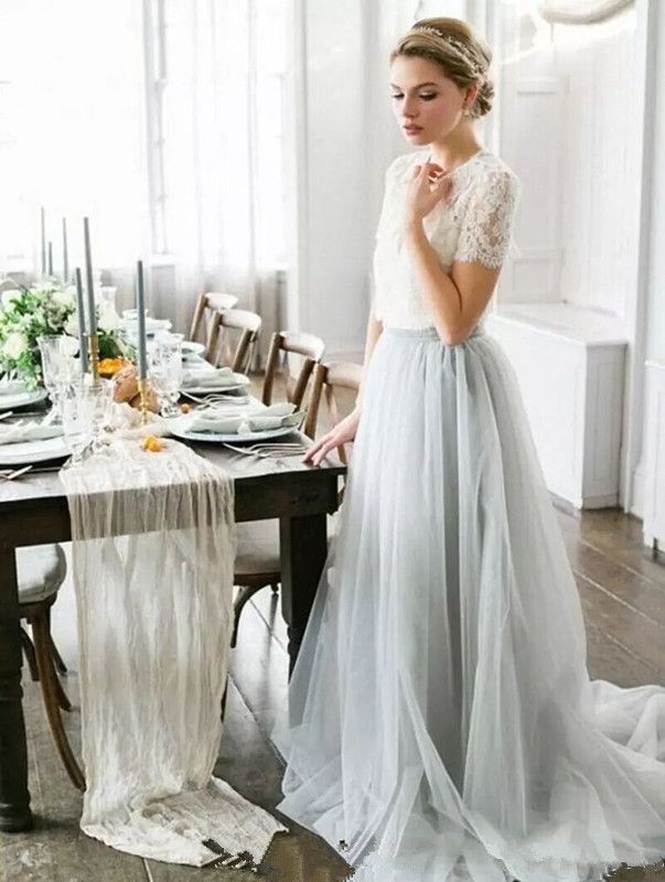 Discount Two Piece Summer Bohemian Beach Wedding Dresses Cheap A Line Tulle Vintage Country Lace Bridal Gowns Short Sleeve Colorful Vestidos De Noiva Informal Wedding Dress Low Cost Wedding Dresses From Sukywedding
